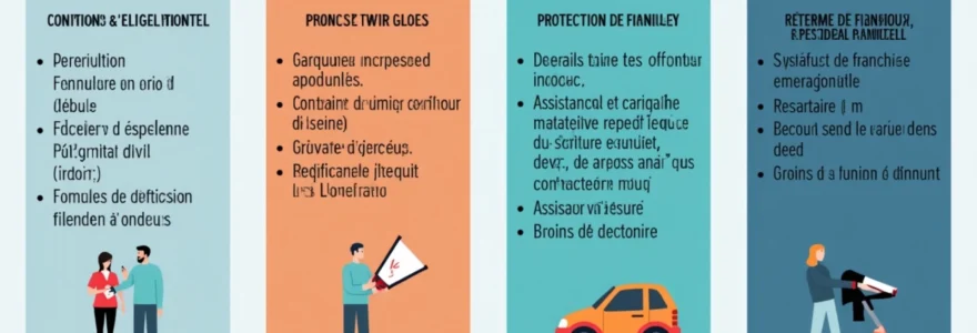La formule de base inclut les garanties essentielles telles que la responsabilité civile et la protection juridique. Elle convient parfaitement aux conducteurs occasionnels qui recherchent une couverture minimale conforme aux exigences légales. La formule intermédiaire, quant à elle, ajoute des garanties comme le vol, l’incendie et le bris de glace, offrant ainsi une protection plus complète.
